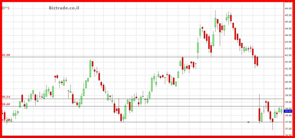 מאז הירידות החדות , המחיר תקוע בטווחים שבין, 37.6$ -- 38.7$ , כאשר רק פריצה או שבירה של האזור יוכל לתת כיוון חדש.
