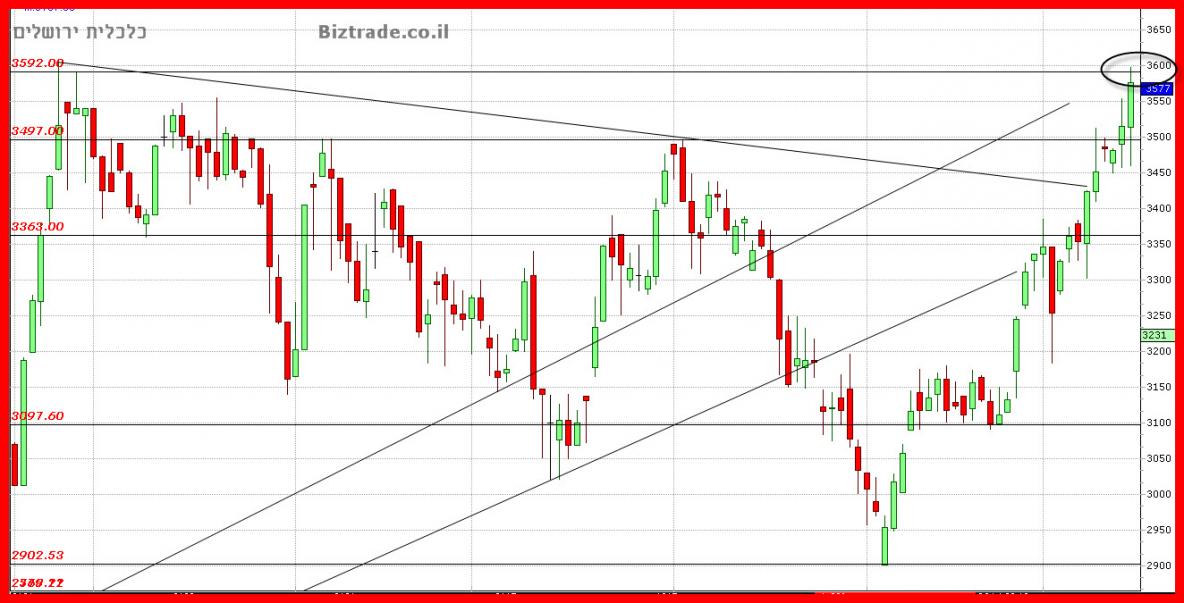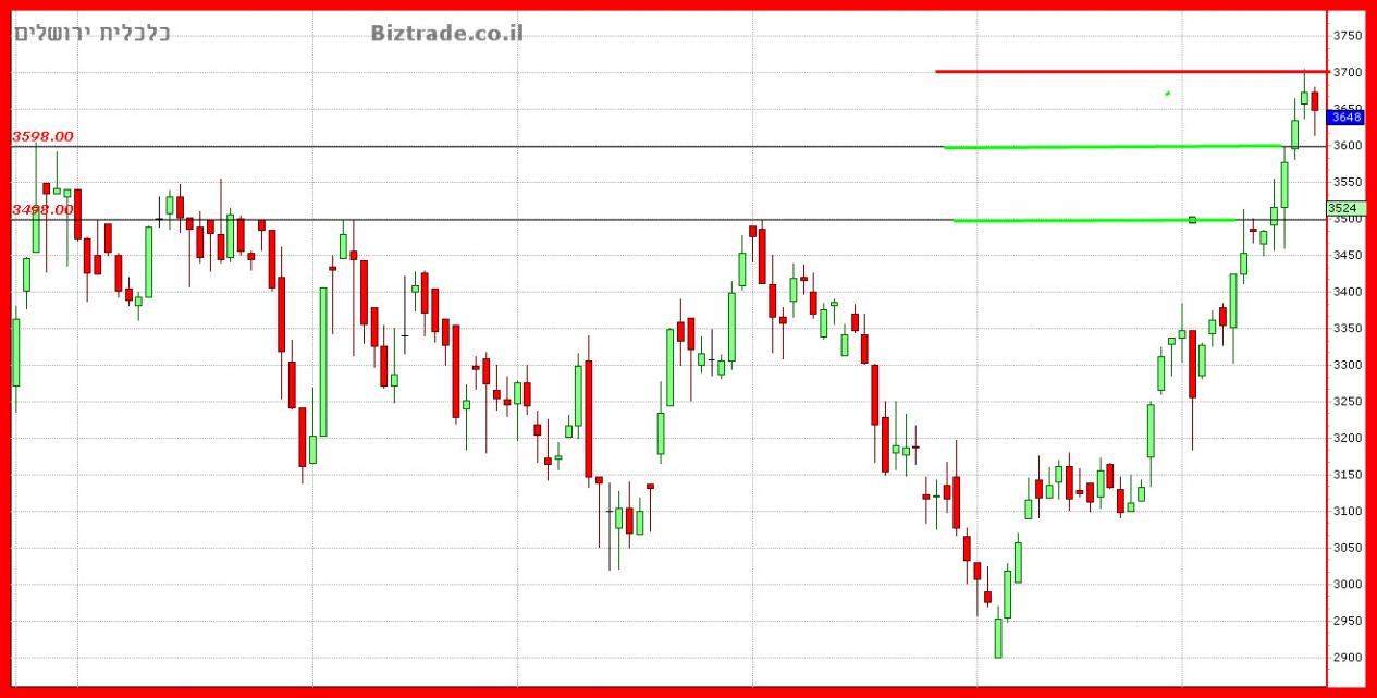 אכן היא סגרה מעל ה 3600 , כאשר בתוך יומי היא הגיע גם מעל ה 3650.
