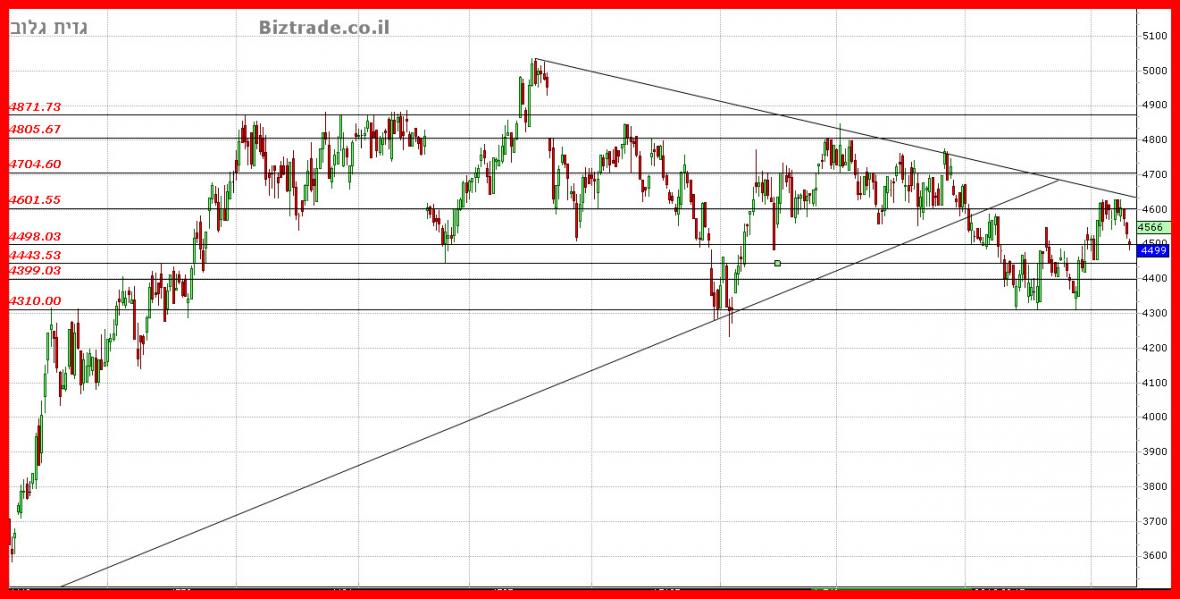 ומ 4640 המחיר מבצע פרסה חזרה, וסוגר אתמול על , 4499 , שהיא נק" בודדת מתחת ל תמיכה ב 4500.