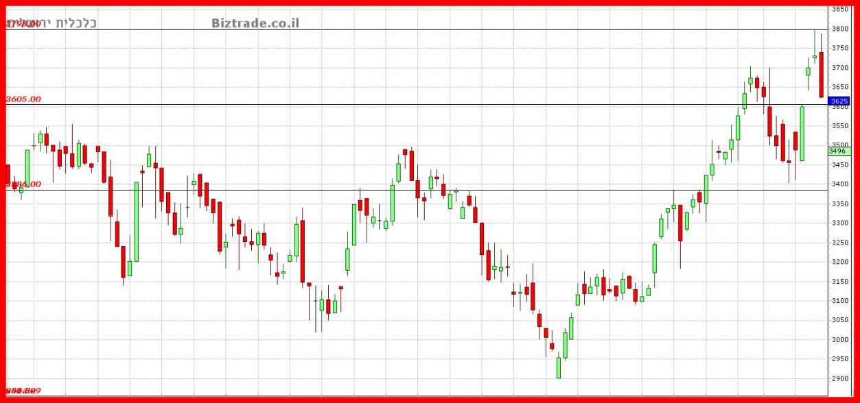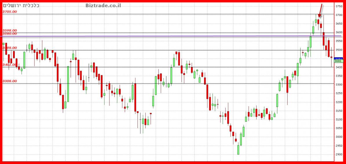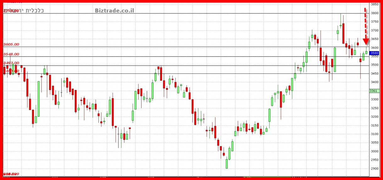 "כול ה 5 נרות היפנים האחרונים עם צל עליון, ושניים מהם גם נדחו מה 3650 כולל האחרון, על כן בהחלט יתכן, ש המחיר ישבור חזרה את ה 3600 , כבר ביום המסחר הבא.