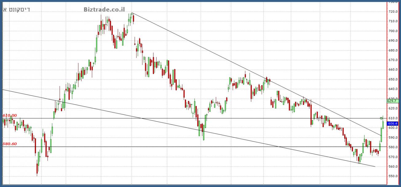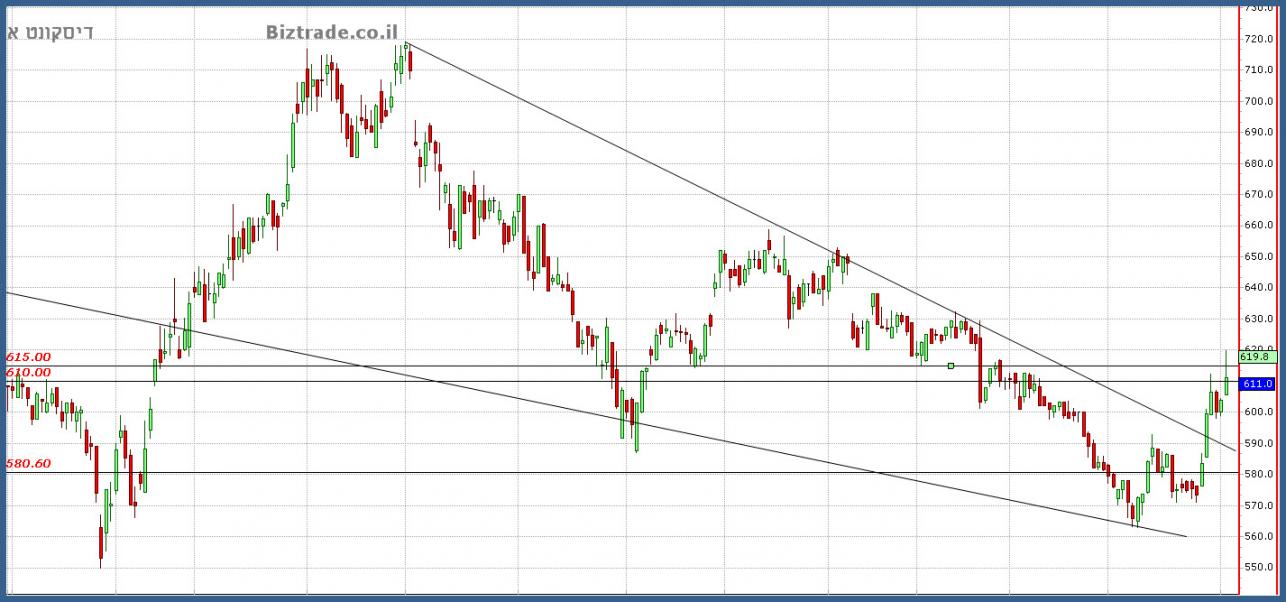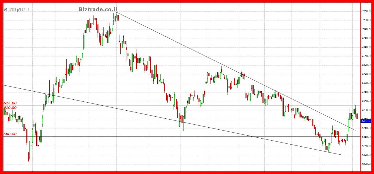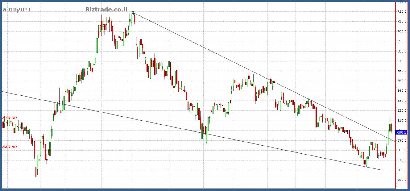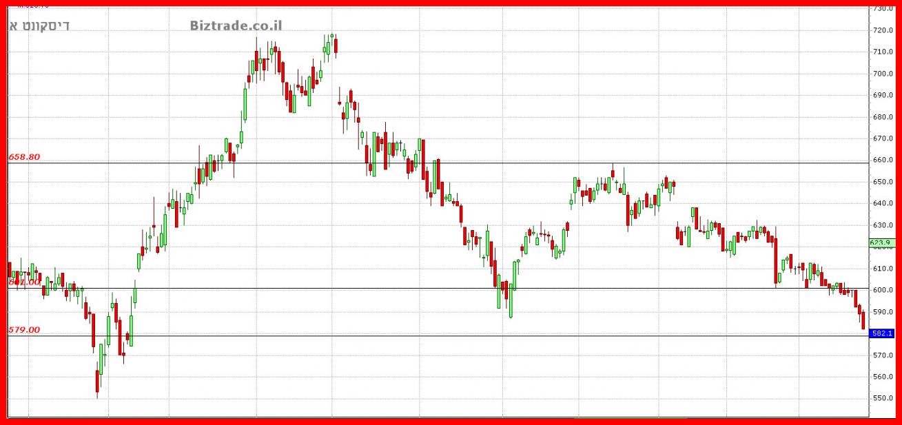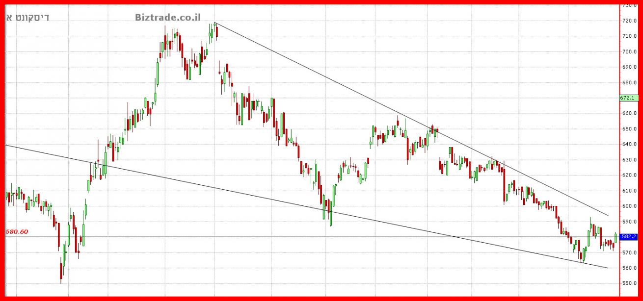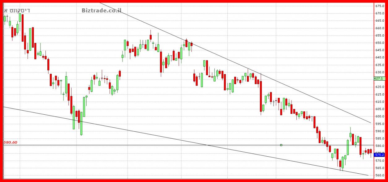 ברור שמבחינה טכניתדיסקונט יכול בהחלט לרדת ל 560 --558 , שם עובר קו מגמה ארוך טווח, וכול עוד הוא חוסך את זה מעצמו, זה לא יוצר שום בעיה טכנית עתידית.