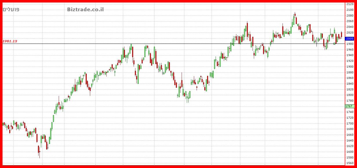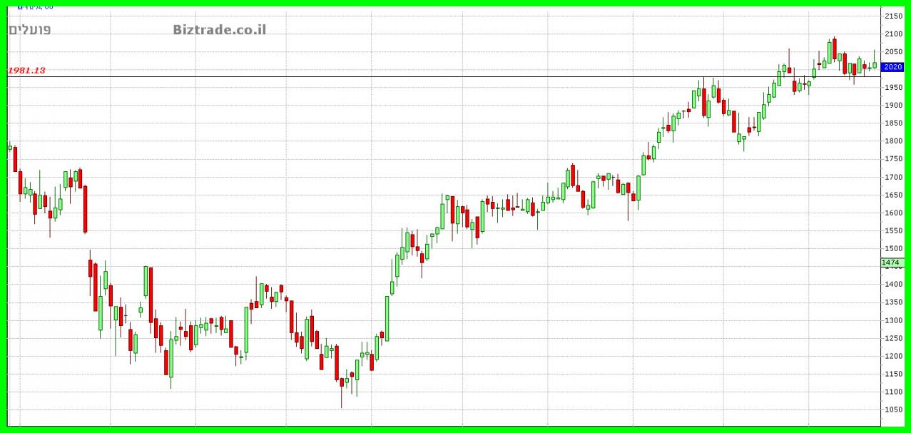 גרף יומי כבר נמצא 6 ימים בירידה וידו עדיין נטויה , , כאשר הוא נמצא במקום כזה בגרף היומי אשר , יוכל ליצור תמיכה בקרוב ויתכן לפני שבירת ה 2000. המחיר שובר היום ממוצע 20 ונתמך בינתיים בממוצע 50 כאשר שני ממוצעים אלא הם בהחלט פקטור להמשך.
