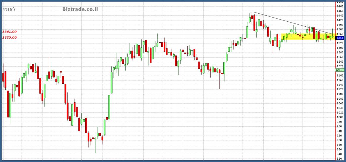 על כן במידה והמעוף עולה נרצה לראות גם אתלאומי נותנת את השיקלול שלה, אבל בינתיים זה לא קורה , והיא ב תקרה מרובעת על ה 1400 , ובהחלט השוק מצפה כבר לפריצה, כן או לא !