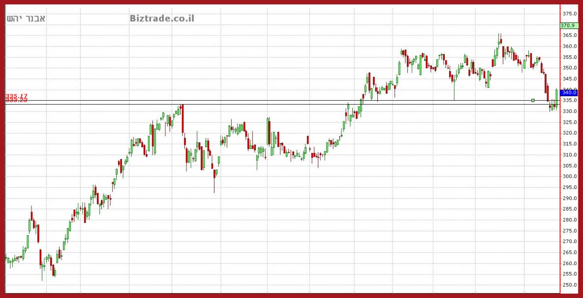 אכן המסחר הלך ימינה כנכתב בעדכון של סופ"ש, וממנו עולה ופרוץ היום את ה רמות החשובות ב 333 = קו מגן + 335 ומגיע לסגירה ב 340.