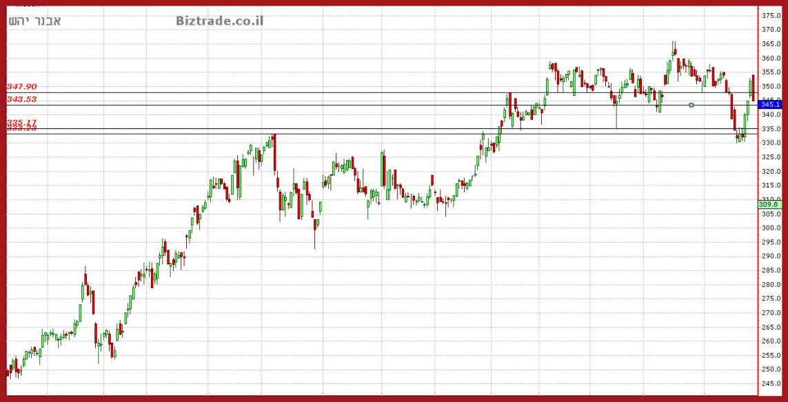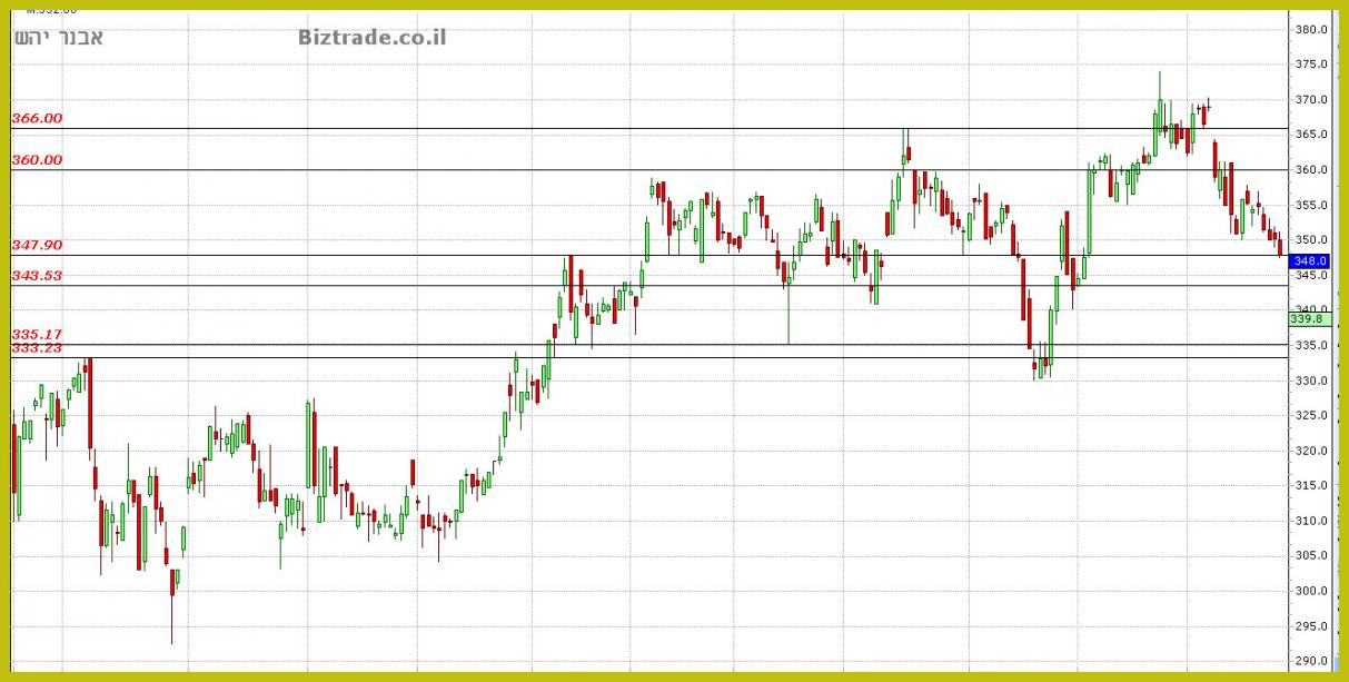 המחיר מסיים את השבוע ב 345, שזה מתחת לתמיכה טכנית ב 348,