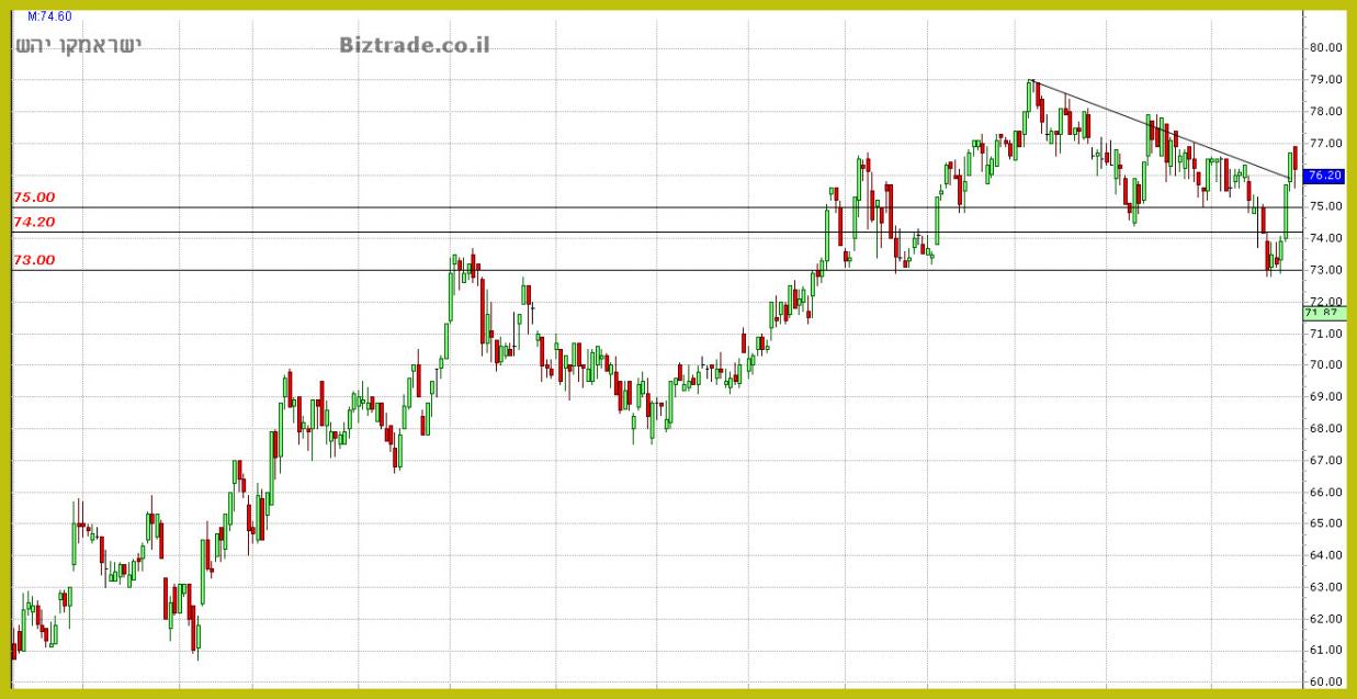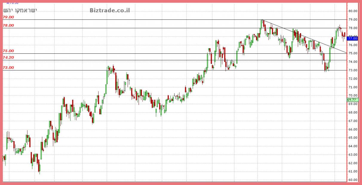 תנועת המחירים צפוייה לנוע בין ה 75 -- 78, וכול בריחה ממנה = כיוון המשך.
