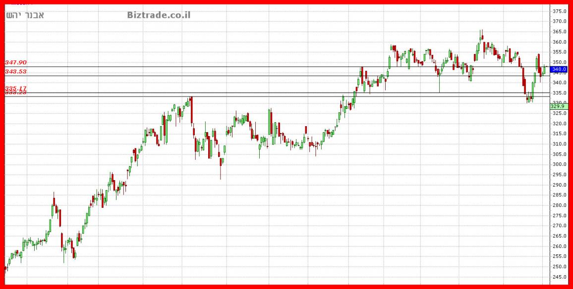 המחיר הגיע שוב ל 370 , יצר תקרה כפולה טכנית ומשם יורד לסגירה שבועית ב 354, לאחר בדיקת ה 350 כתמיכה.