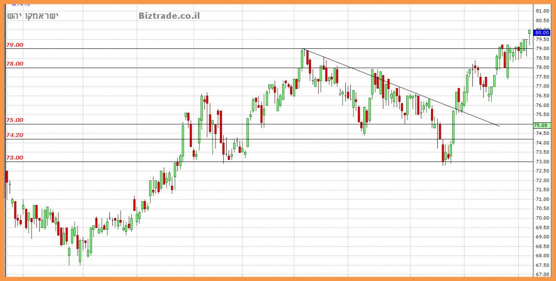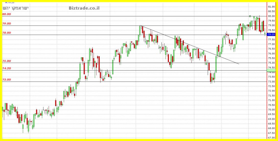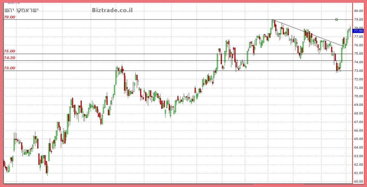 המחיר גם מצליח לפרוץ את ה 79 וגם להחזיק בו כ 4 ימי מסחר , כך שכרגע הוא חופשי להמשך עליות , כאשר פריצה מוכחת