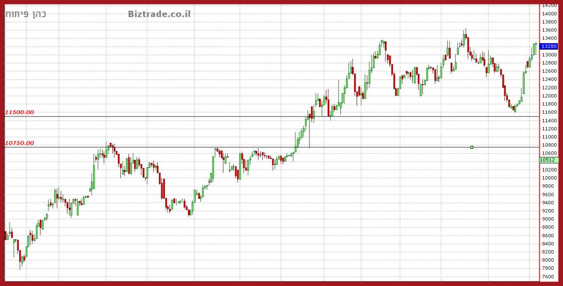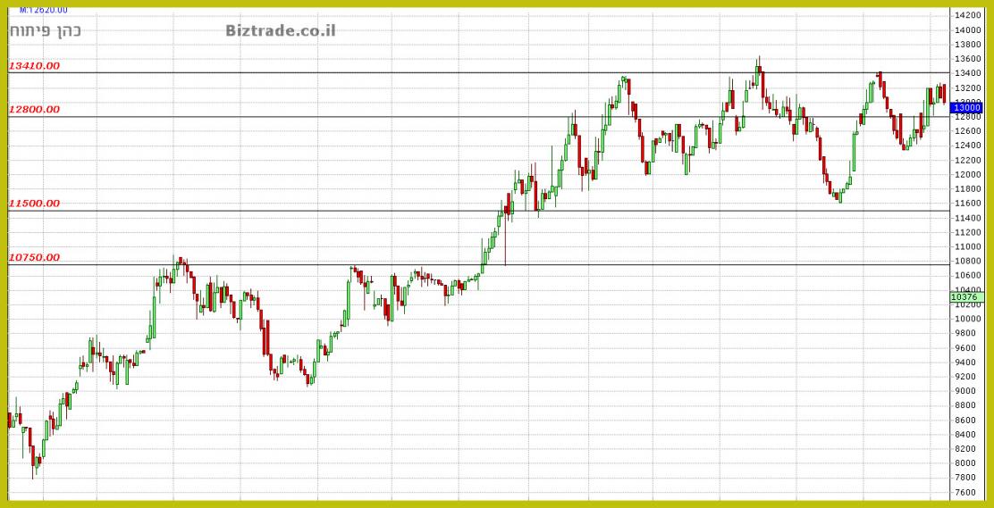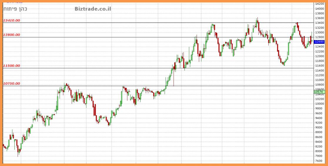 ואילו שבירת ה 12800 תציין חזרה לירידות.