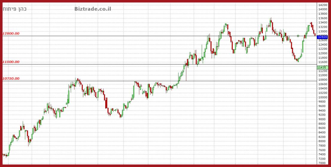 הוא נסחר כרגע מתחת לתמיכה ב 12800, שאתמול ניסה לפרוץ חזרה ללא הצלחה בינתיים.