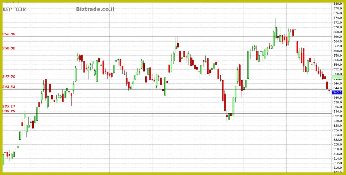 במידה והמחיר לא יחזור היום מעל ה344 , הצפי יהיה המשך ירידות לקראת ה 340.