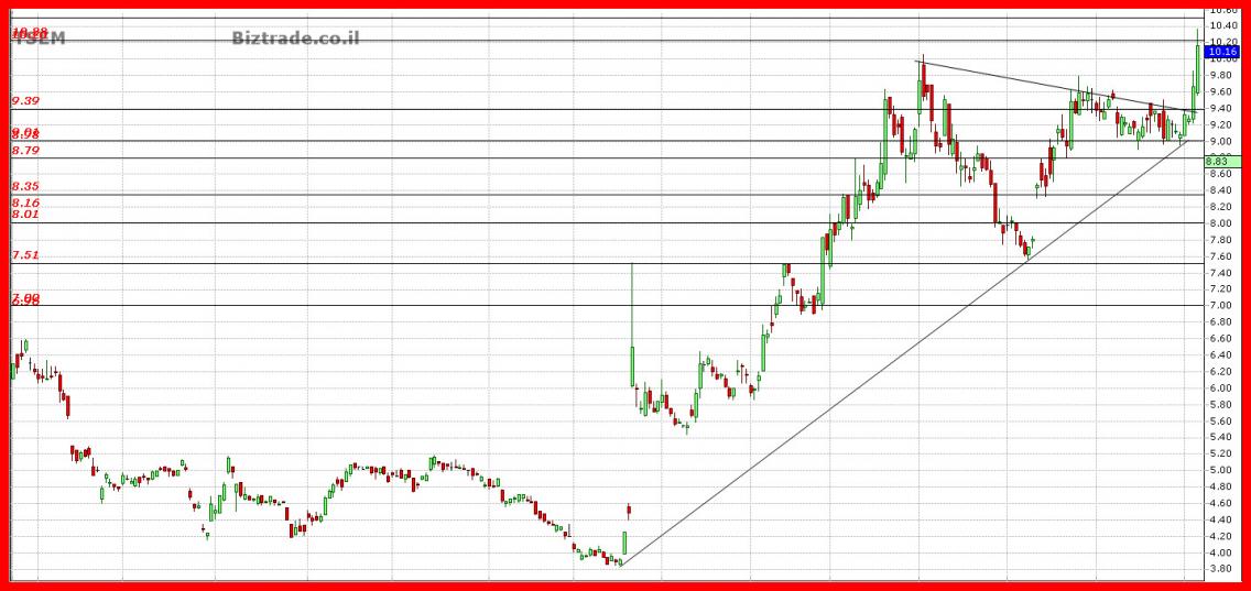 למרות העליות אתמול של מעל 5%, המחיר לא פרץ התנגדות חשובה ב 10.2$, על כן המהלך העולה האחרון בן יומיים מאז ה 9.2$ , לוקה בחסר עקב אי הצלחה בפריצת ה 10.2$