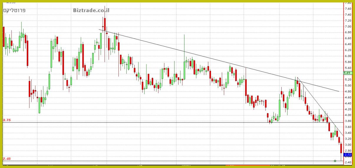 הבראה בגרף זה תתרחש רק כאשר המחיר יוכל לפרוץ את קו המגמה היורד שנמצא כרגע ב 4.5 - 4.4$ , עד אז תיסחרפרוטליקס בחולשה. , אבל הצעדים הנוכחיים בכדי למצוא תחתית אזורית הוא טכנית מאוד חשוב ,