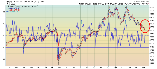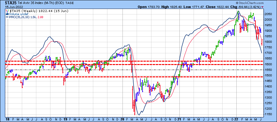 להבנתי אחרי שרמת התמיכה של 1760 נק' נפרצה הגרף השבועי רואה את רמת התמיכה הבאה באיזור ה-1500 נק' איזור בו שהה המדד ב-בסביבות ינואר 21. הירידה מ-1800 נק' קיבעה את המגמה הדובית הארוכה בגרף.