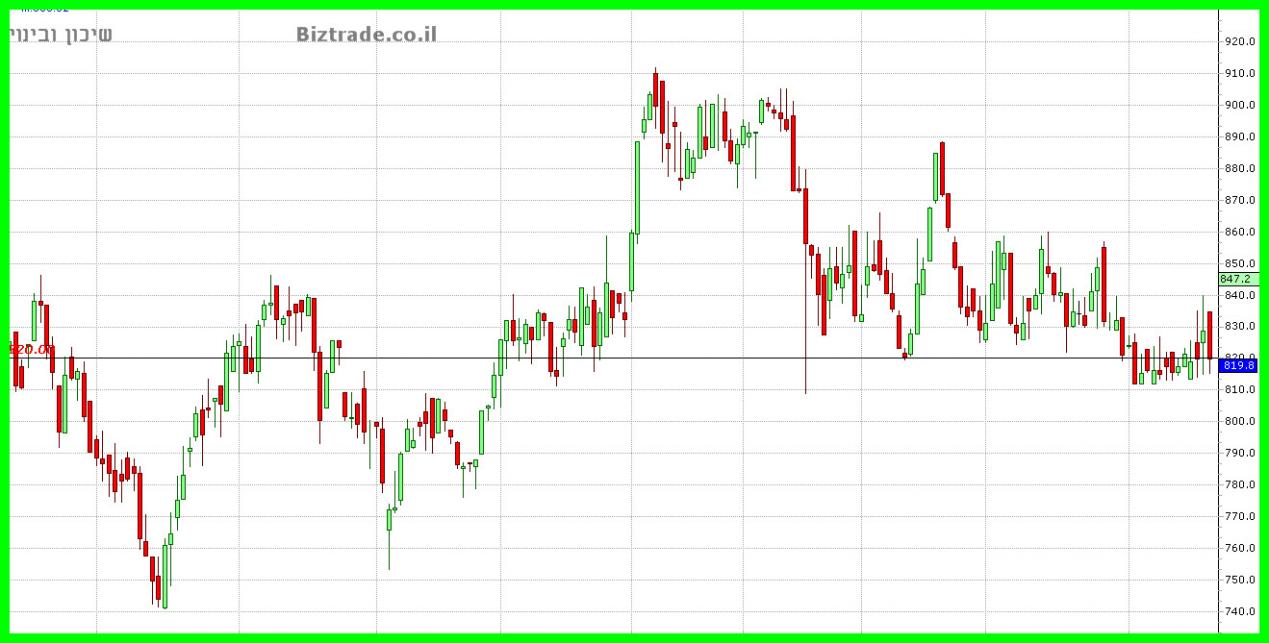 עליות היו או אולי ניסיון לעליות, אבל סיבה לא הייתה , ועובדתית המחיר סוגר מתחת ל 820 שלא היה צריך להיפרץ שבוע זה כלל.
