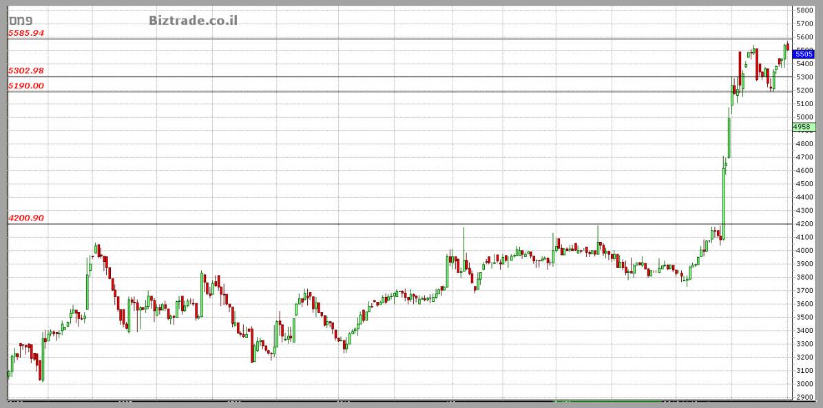 ולכן תנועת מחיר יכולה להגיע רק בפריצת ה 5600 או שבירת ה 5200.
