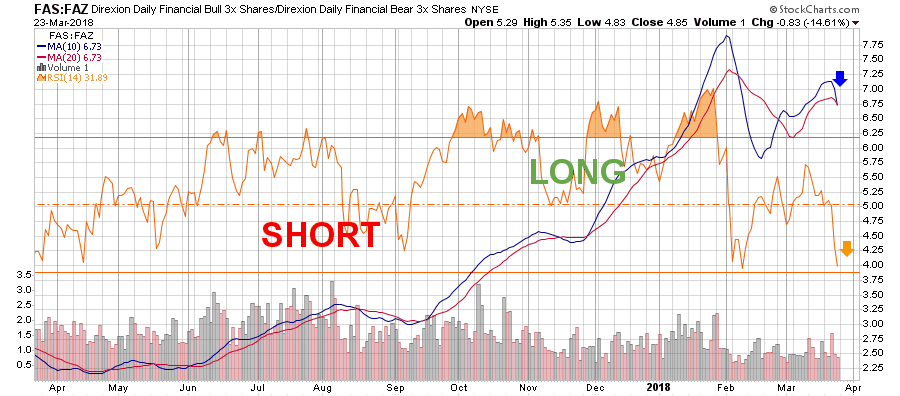 להלן הגרף לצמד התעודות בממוצעים הנעים ולמתנד ה-RSI שנע בגזרת השורט שלו.