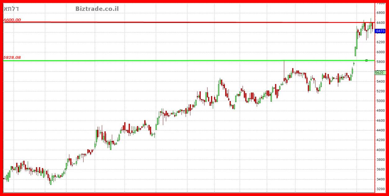 טכנית הגרף ה שבועי והיומי נמצאים בקניות יתר, כאשר רמת ה 6600 מחזיקה את המחיר במשך 8 ימי המסחר האחרונים ולא נותנת לו עליות נוספות , מצד שני כול ירידה מה 6300 מחזירה את הקונים או חלקם לפחות מיד.