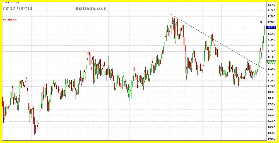 עוד הצלחה ברורה במה שנכתב על הגרף כמו אחרים רבים כאשר פשוט נכתב , " פריצה של ה 11400 = המשך עליות , וסגירה שבועית ב 12040 , אומר הכול.
