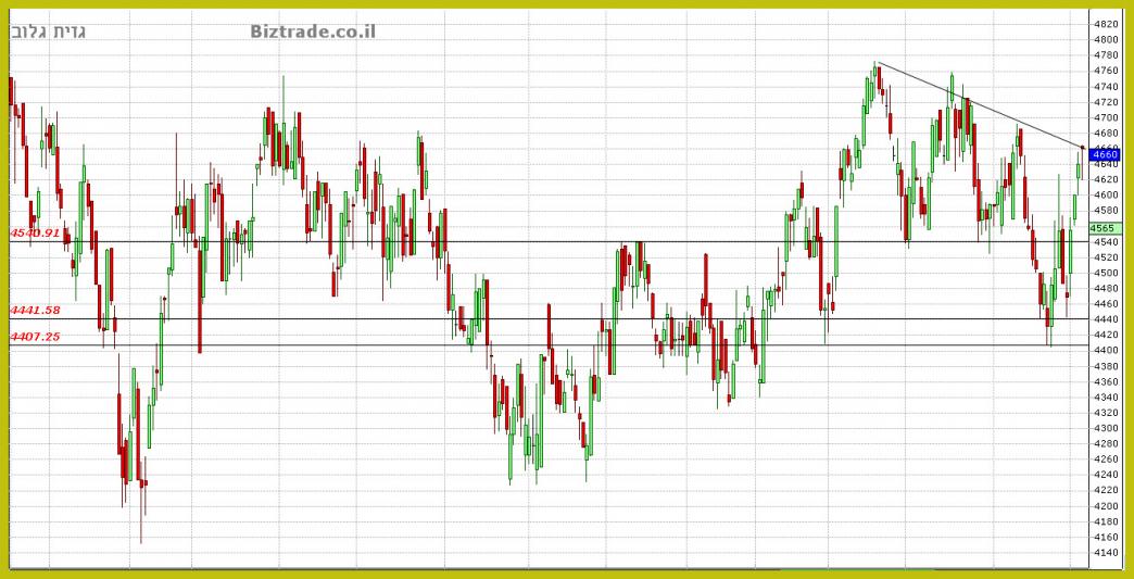 הצפי נשאר שלילי , כאשר רק פריצת ה 4560 עם סגירה ,יכולה להחזיר את המחיר לעליות מוגבלות עד קו מגמה יורד.