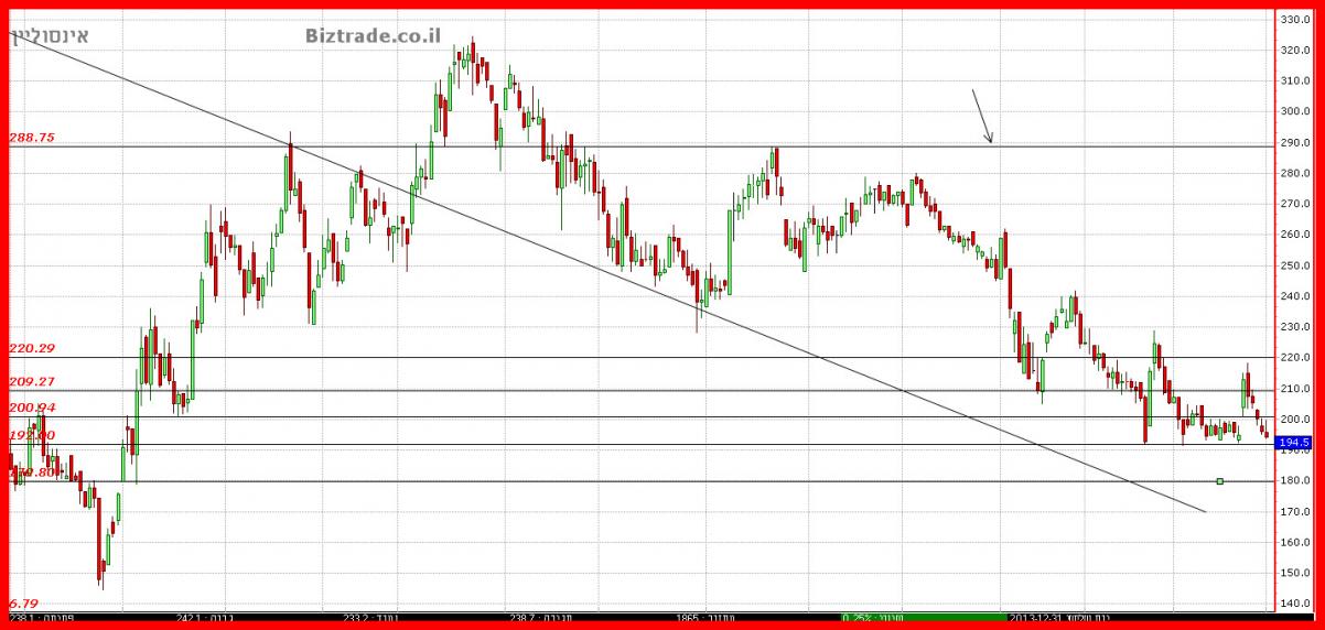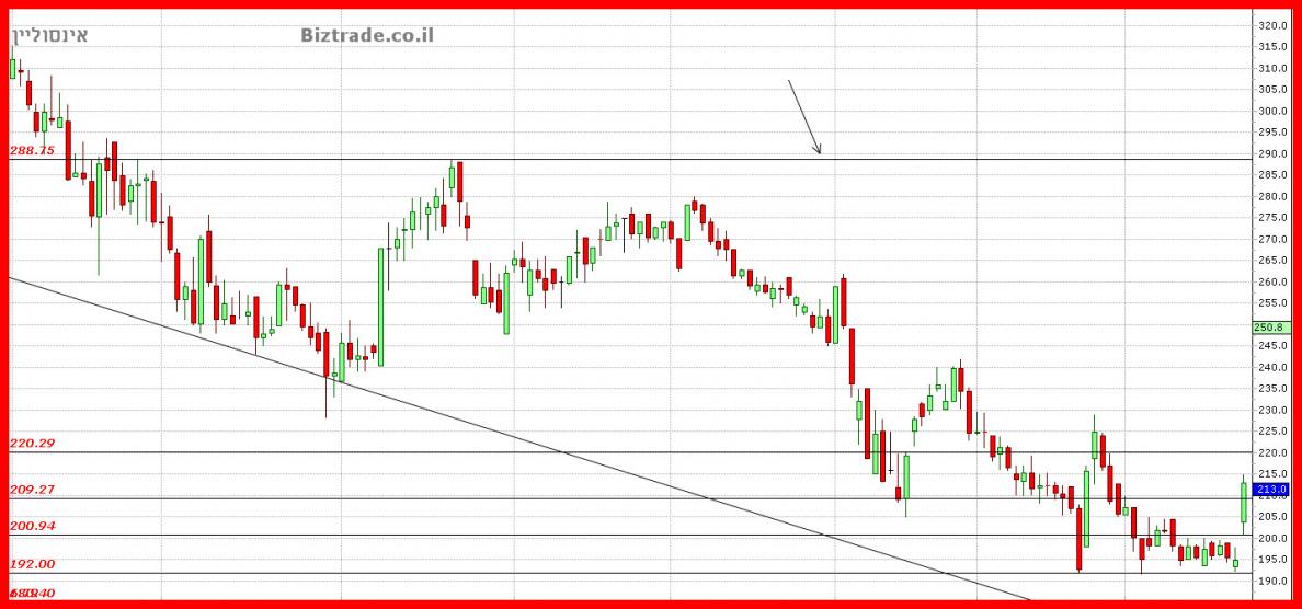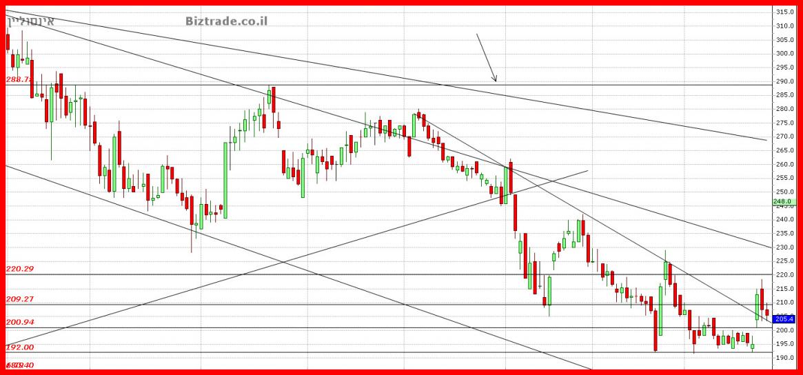 יש לנו כאן את אותו מקרה כמו בכלל ביו ! המחיר אומנם סיים שלילי אבל הוא מעל קו מגמה יורד ( אחד מהם ) + מעל ממוצע 20 ולכן אני חייב לומר שלמרות ההתנגדות ב 220 , ושבירת ה 209 , המחיר עדיין חיובי ! כך שהצפי המיידי הוא לחזור כבר ביום א" לעיות מסויימות.