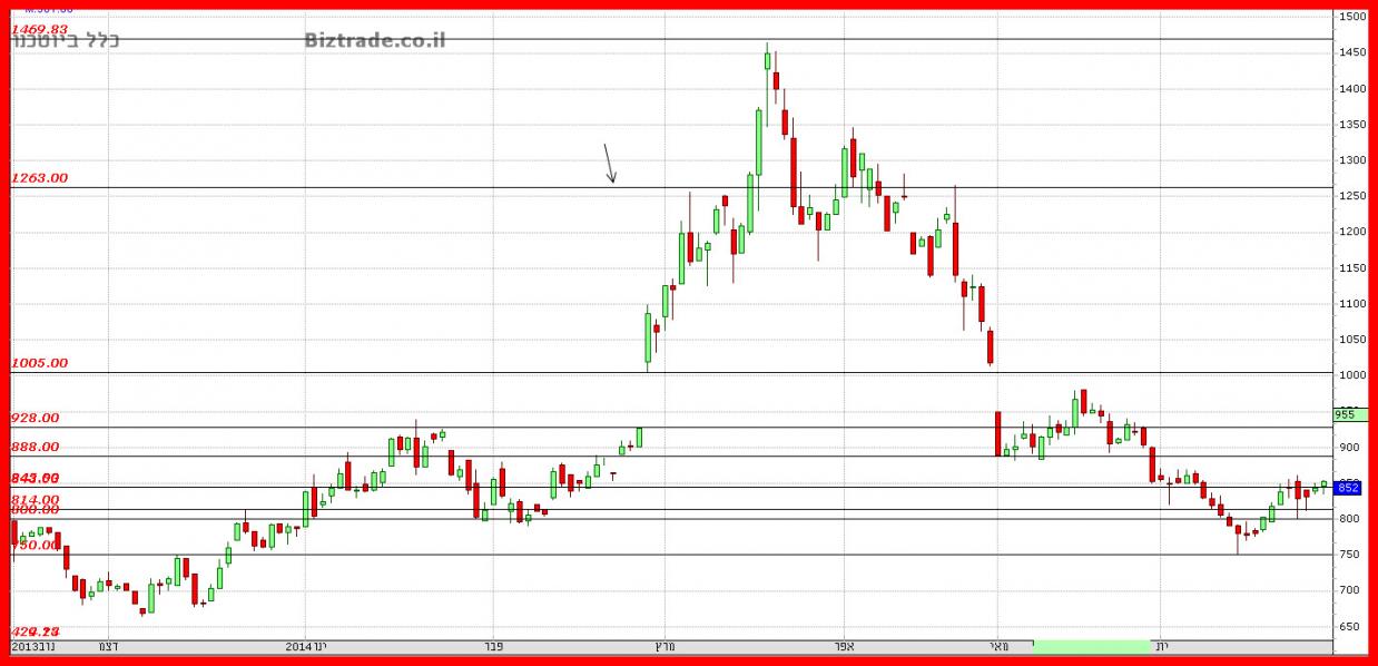 המחיר פורץ בינתיים בתוך יומי את הקו הבעיתי ב 888,