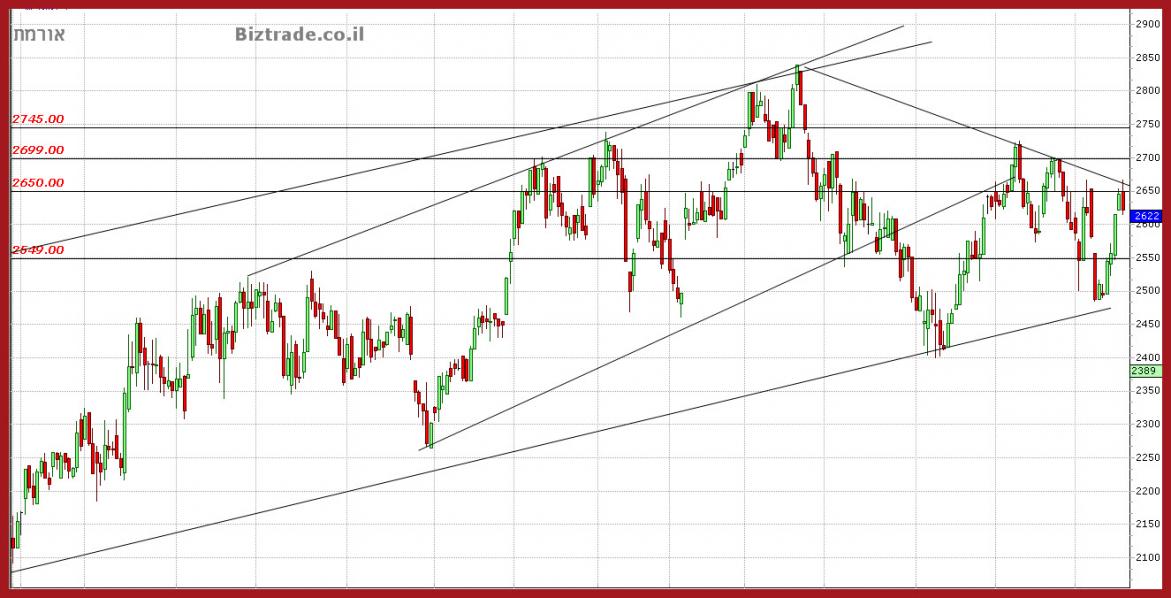 אבל נקודה רעה נוספת היא, שהמחיר מסיים את השבוע גם מתחת לקו אופקי ב 2650.