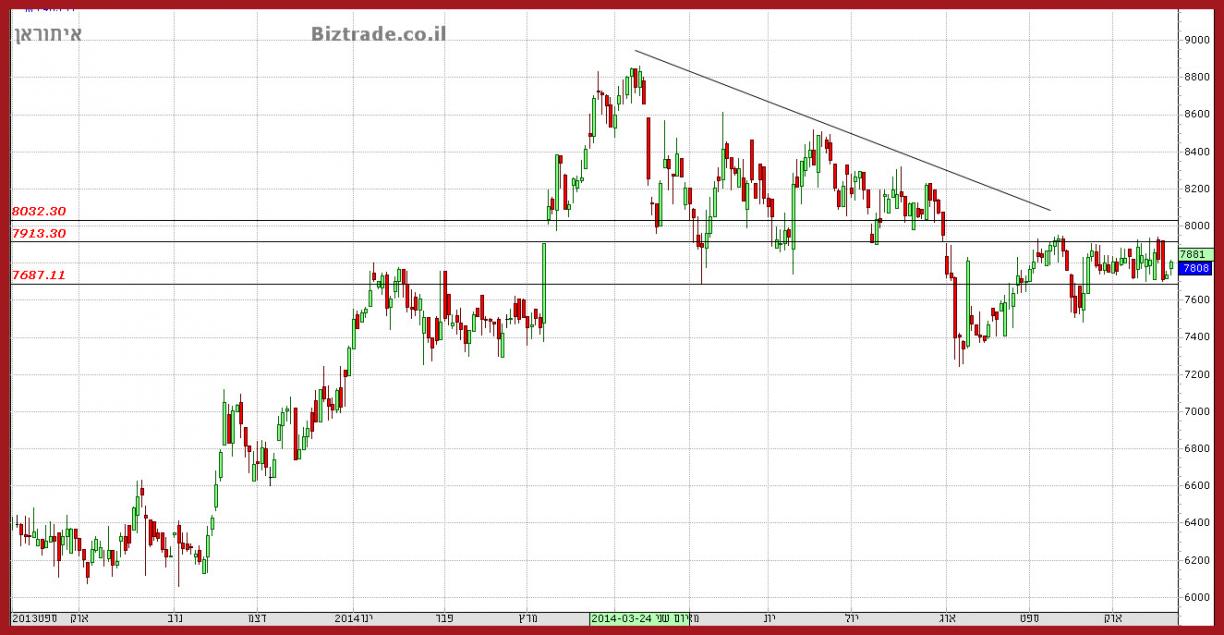אין חדש אומנם אבל המחיר לפחות לא שבר את טווח הדשדוש , כך שכול הרוגע ממשיך כרגיל עד לפריצה או שבירה של הטווח הנתון ב 7687 -- 7915.