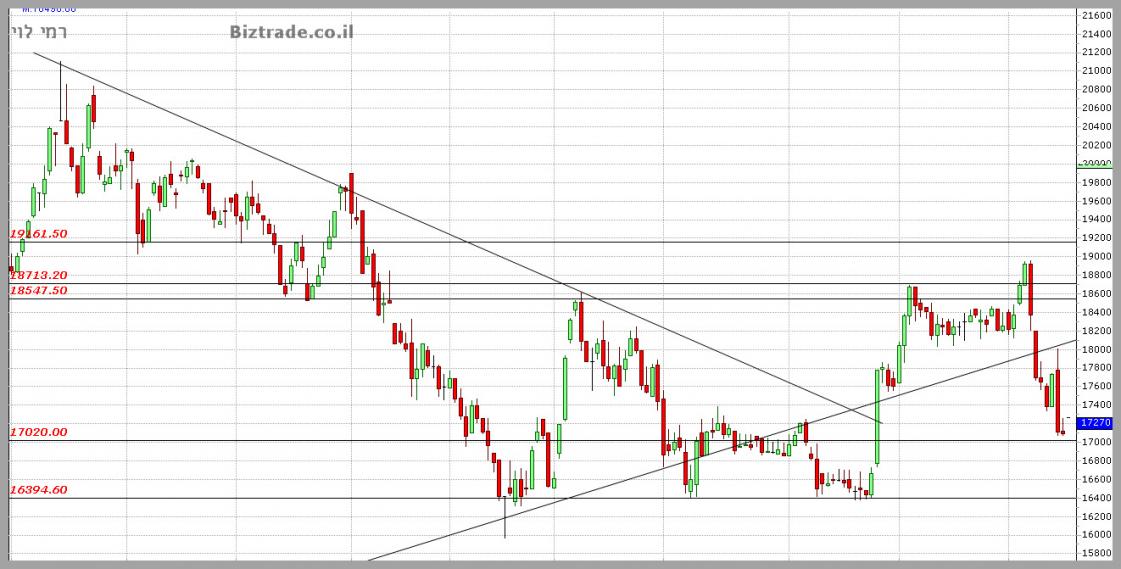 הגרף היה מאוד ממושמע בהקשר לעדכונים שלו, כך שהוא המשיך בירידות הצפויות ונעצר על קו ה 17000.