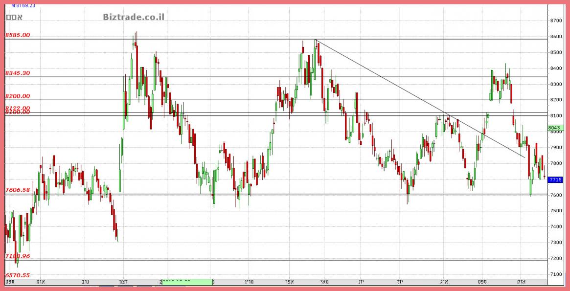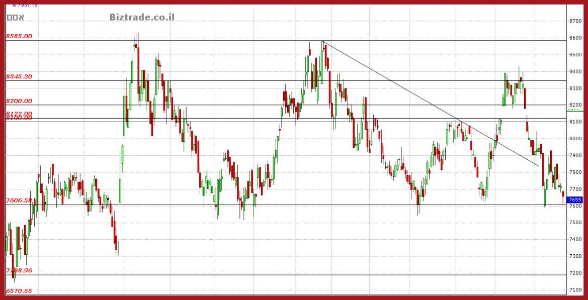 המחיר בדרכו ל 7600 ושם צריך לבחון את הגרף כאשר מראש אני אומר, קיים סכנת שבירה של הקו.
