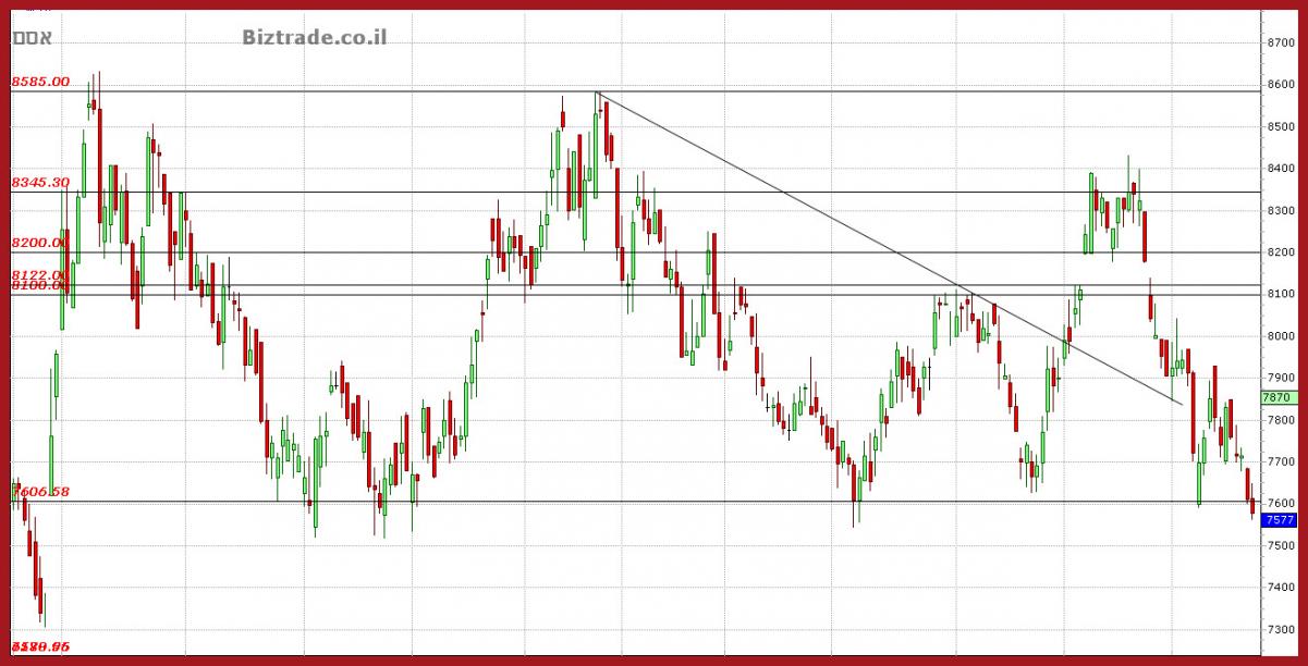כרגע במידה והמחיר לא חוזר מיד מחר מעל ה 7600 , היעד יהיה 7300 בהמשך.