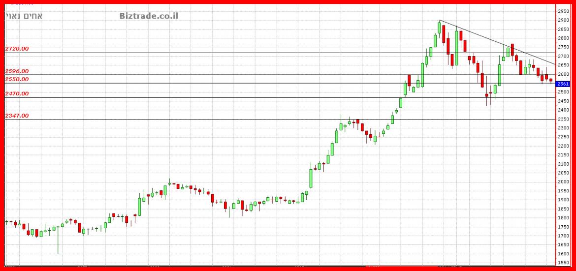 המחיר ממשיך להיות חלש בגרף כאשר זה היום השלישי ברציפות מתחת ל קו ה 2600,