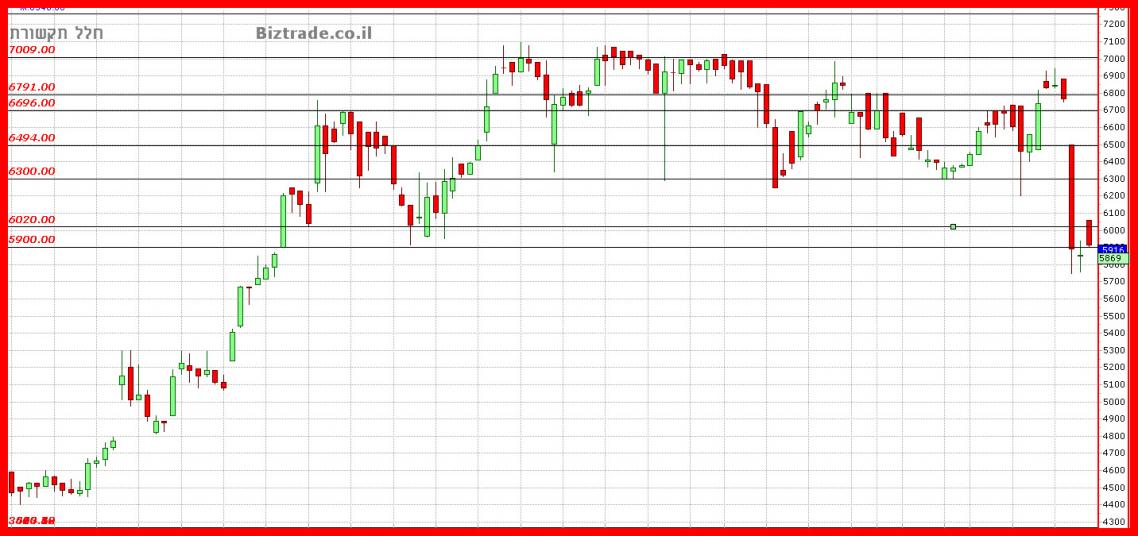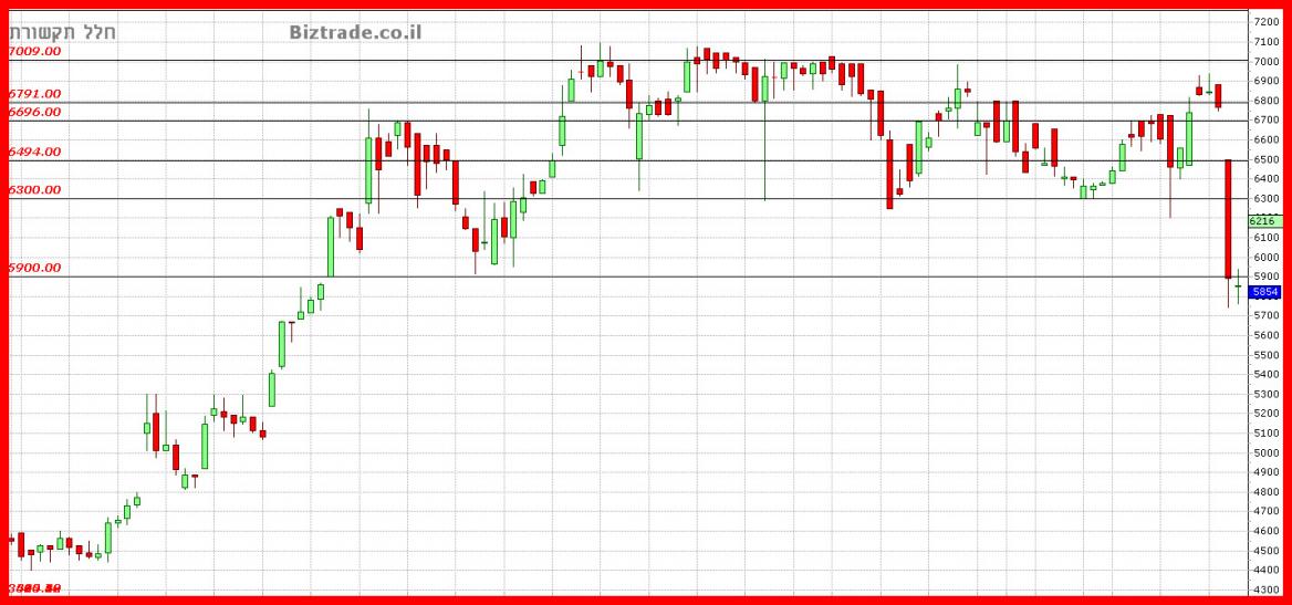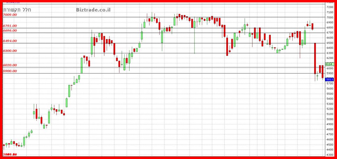 אין עדיין תחתית למהלך האגרסיבי האחרון, 5800 הוא קו תמיכה טוב, אבל אין עדיין ביטחון שיחזיק.