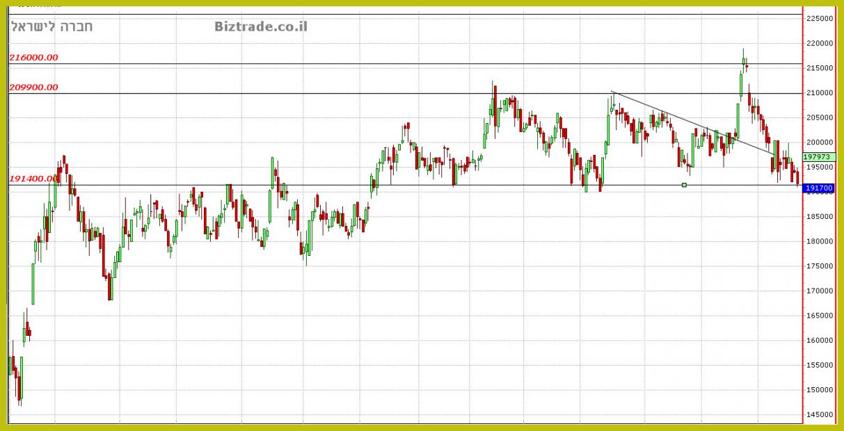 הצפי השלילי שנכתב בסופ"ש מגיע לגרף , והמחיר יורד לקו החשוב ב 191400.