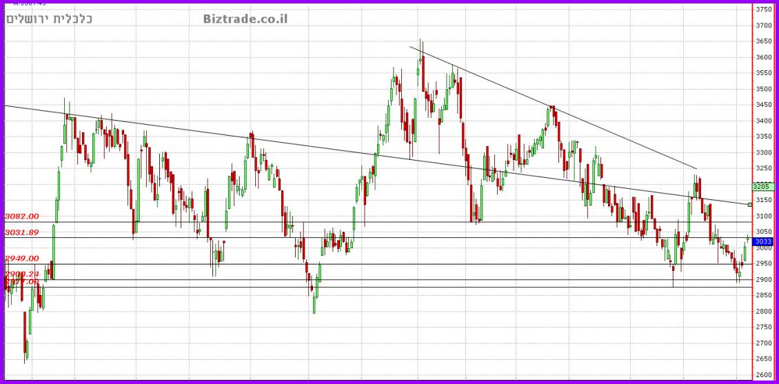 עקרונית כיוונו מעלה אל קו מגמה יורד ב 3130, כך שעוד כ 100 נק" ניתן לצפות שהוא יעלה אבל מעבר לכך אין כרגע