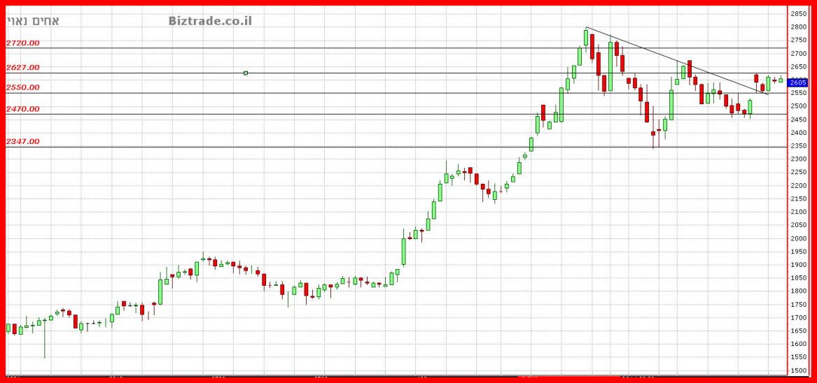 מאז המחיר תקוע 5 ימי מסחר בין ה 2550 - 2627 .