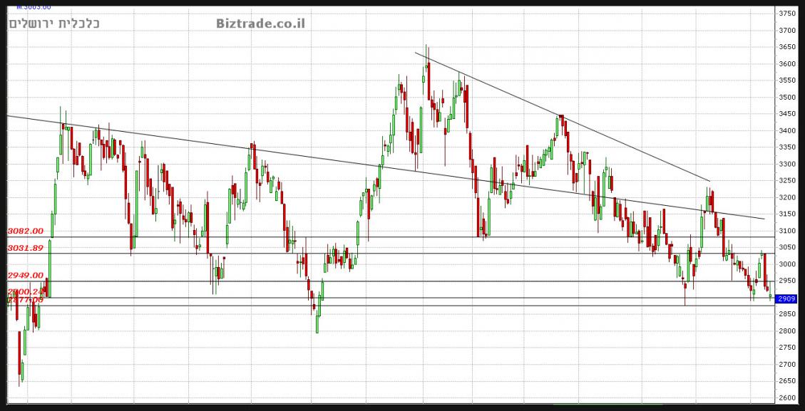 המחיר לא עלה לקו המגמה ובמקום זה ירד חזרה לתמיכה ב 2900 !