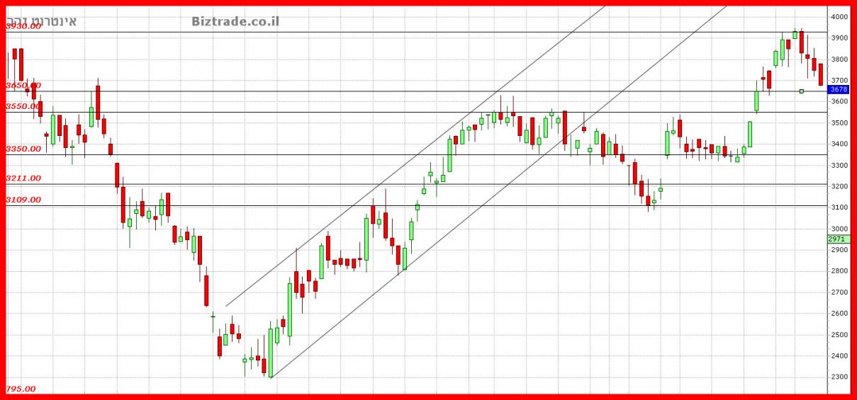 המחיר שובר אתמול את ה3700 , ופניו מטה יותר,