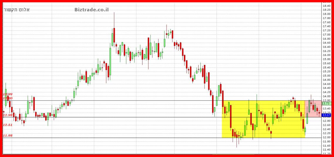 בשל או לא, סיכוי לעליות או לא, המסחר לא מצליח למצא את הכוחות לפרוץ את ה 14$ , שקיבע את המחיר כבר מעל חודשיים.