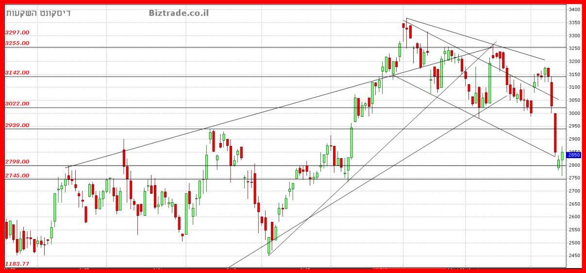כרגע הצפי הוא לנוע בטווחים שבין 2800 -- 2900 , כאשר סיכוי להגעה לקו העליון של התעלה רק לאחר פריצת ה 2950.