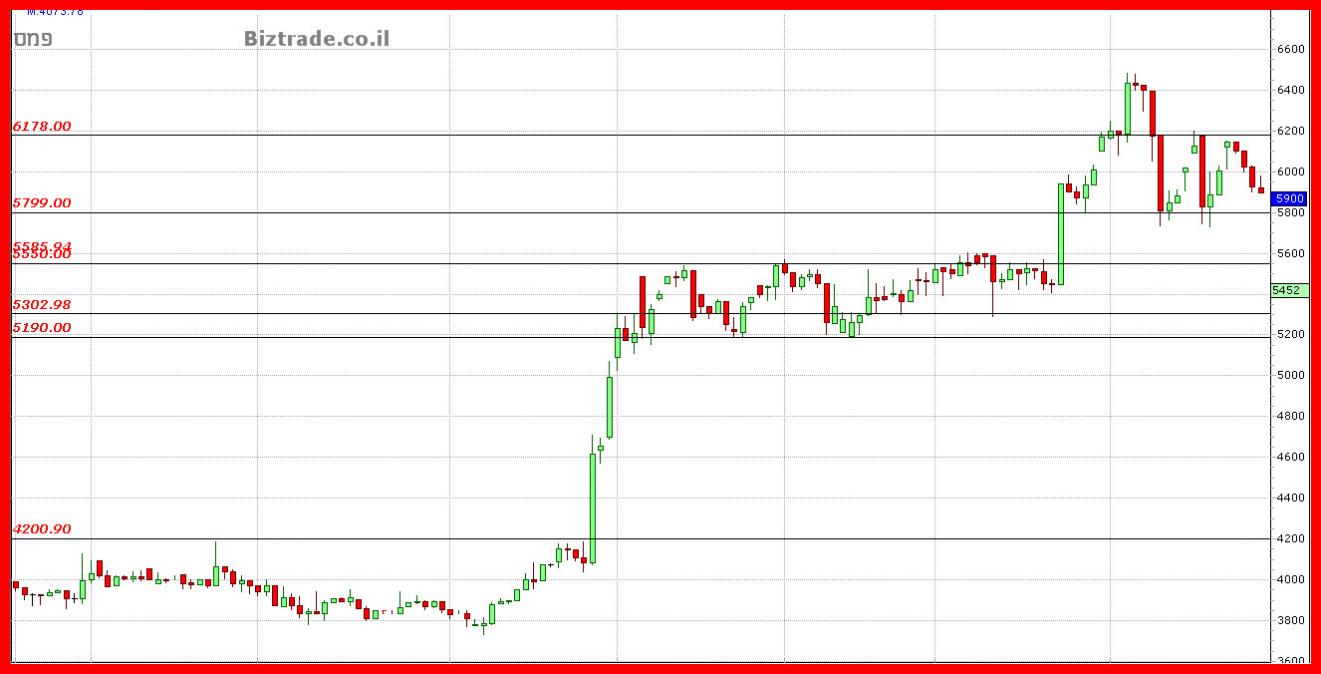 על כן למרות שהעדיפות הטכנית היא המשך ירידות כול עוד אין פריצה של הגבוה, אזי קו ה 5800 עדיין שומר על המחיר .