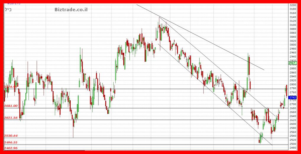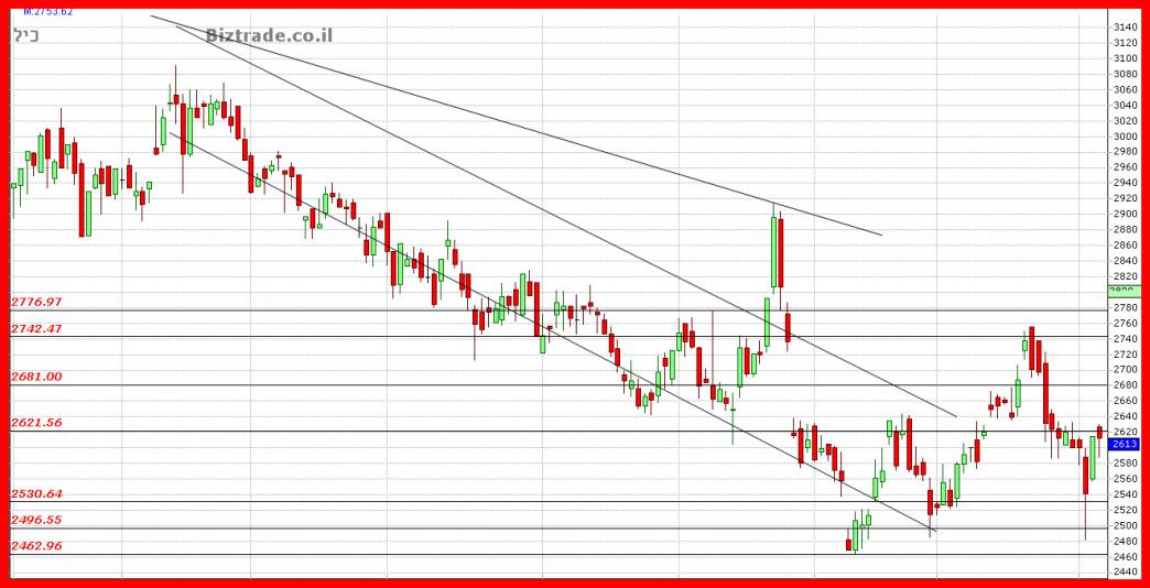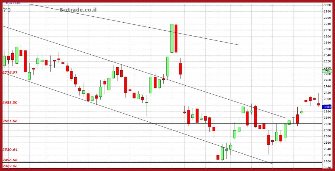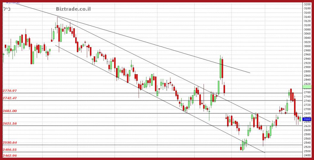 הסגירה השבועית לא משהו כי היא מתחת לקו טכני חשוב ב 2620 , כך שאין כלל ביטחון שהמחיר חוזר לעליות,