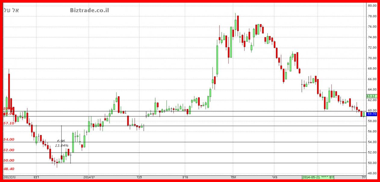 כרגע המחיר סביב ה 59 כאשר ירדה ממנו = 58 בדרך לתמיכה טובה יותר.