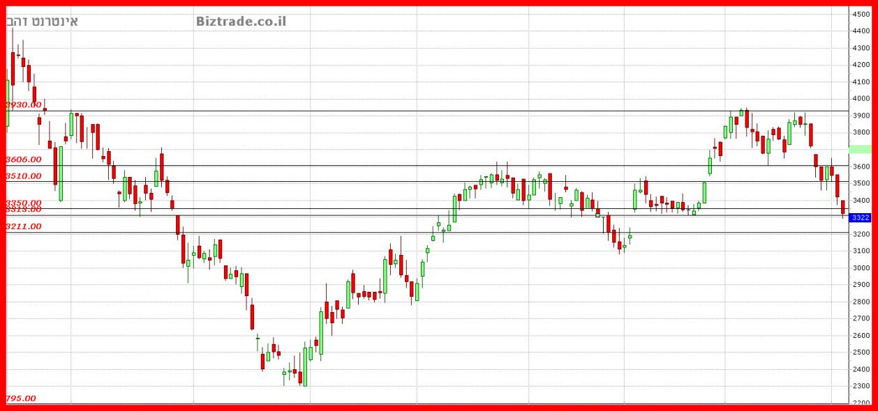 שבירת ה 3313 והתקרבות ל 3200 , במידה ומשום מה המחיר יעלה ביום א" אזי הוא צפוי להיחסם ב 3500.
