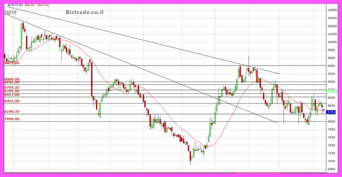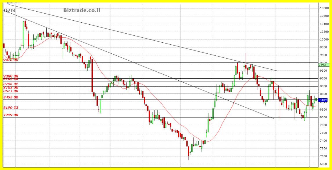 המחיר בהליכה ימינה , לא מדשדש , וכול עוד ההליכה ימינה הזו מתרחש מעל ממוצע 20 , אני חייב להגדיר את הגרף כחיובי להמשך , ומצב זה צפוי להביא לפריצת ה 8600..