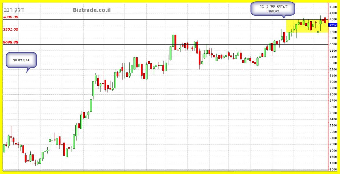 תנועת המחיר תיווצר רק בפריצה או שבירה של הטווח , והטווח בגרף זה הוא , 4000 -- 3800.