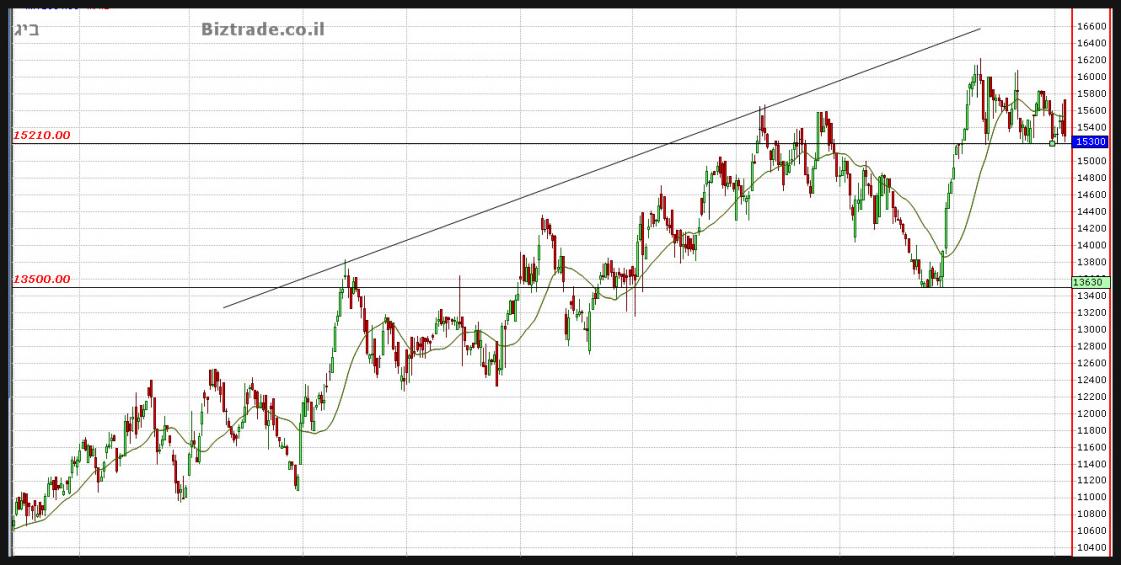 במידה וקו ה 15200 ישבר, הגרף צפוי לרדת ל 14000 , באופן מהיר.