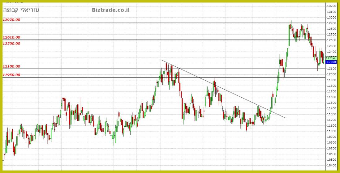 שבירה של 12100 = המשך ירידות ל 11950 תחילה.