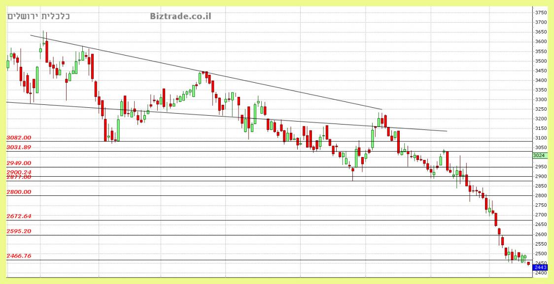 זה כבר יומיים רציפים שהמחיר מתנהל מתחת ל קו הטכני המאוד חשוב ב 2466.