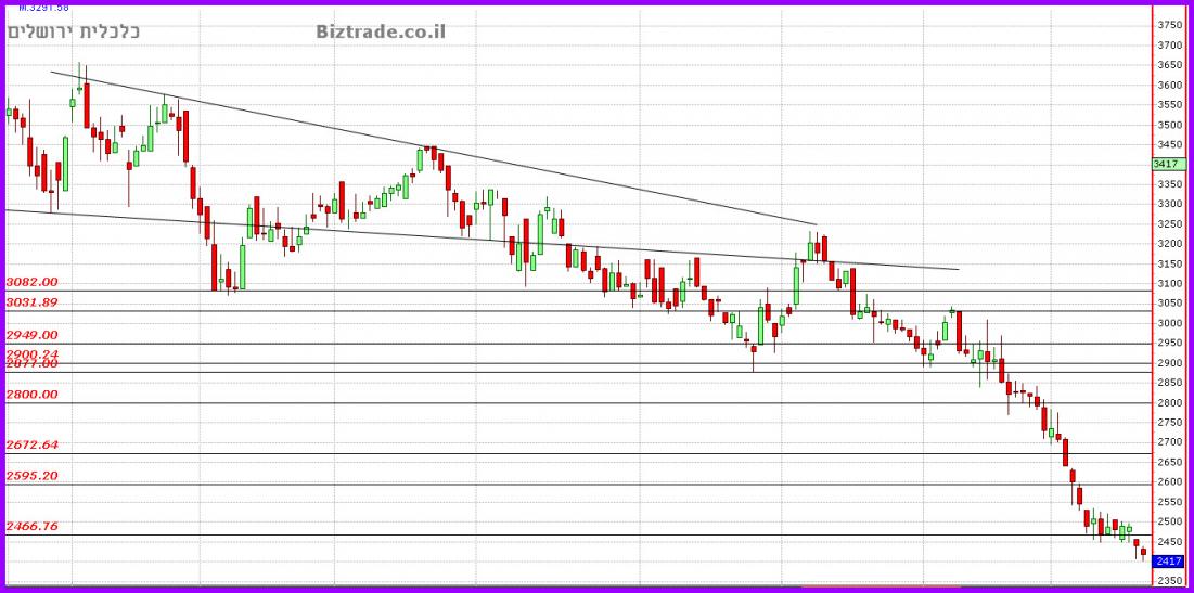 במידה והמחיר לא יחזור מיד היום עד מחר בסגירה מעל אותו קו אזי היעד יהיה 2400 תחילה.